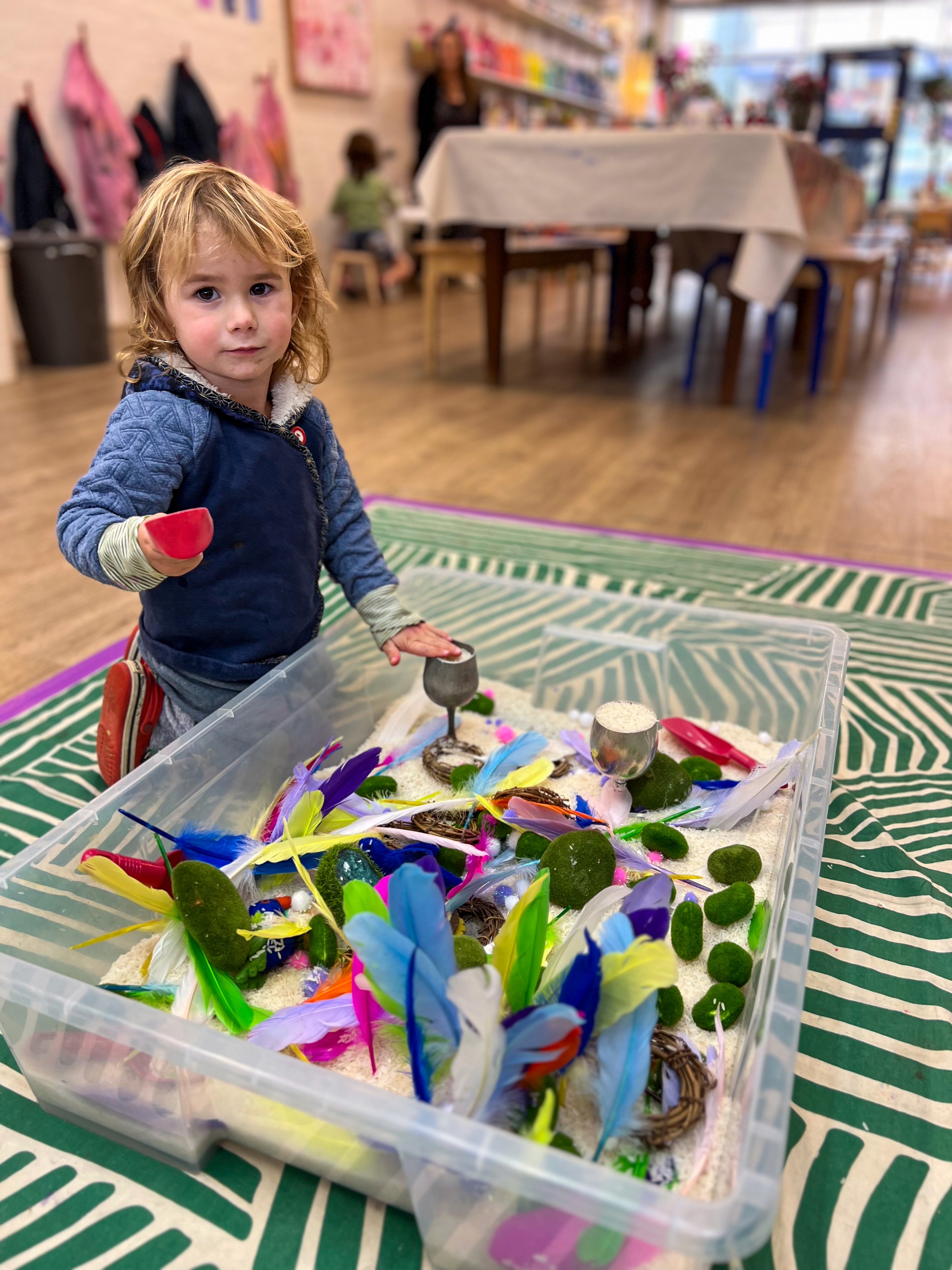 Sensory play supports language development, fine motor skills, and emotional regulation. It gives children the space to explore textures and materials at their own pace, and the open-ended nature of it means there's no right or wrong way to engage. Set it up, step back, and let the play come!