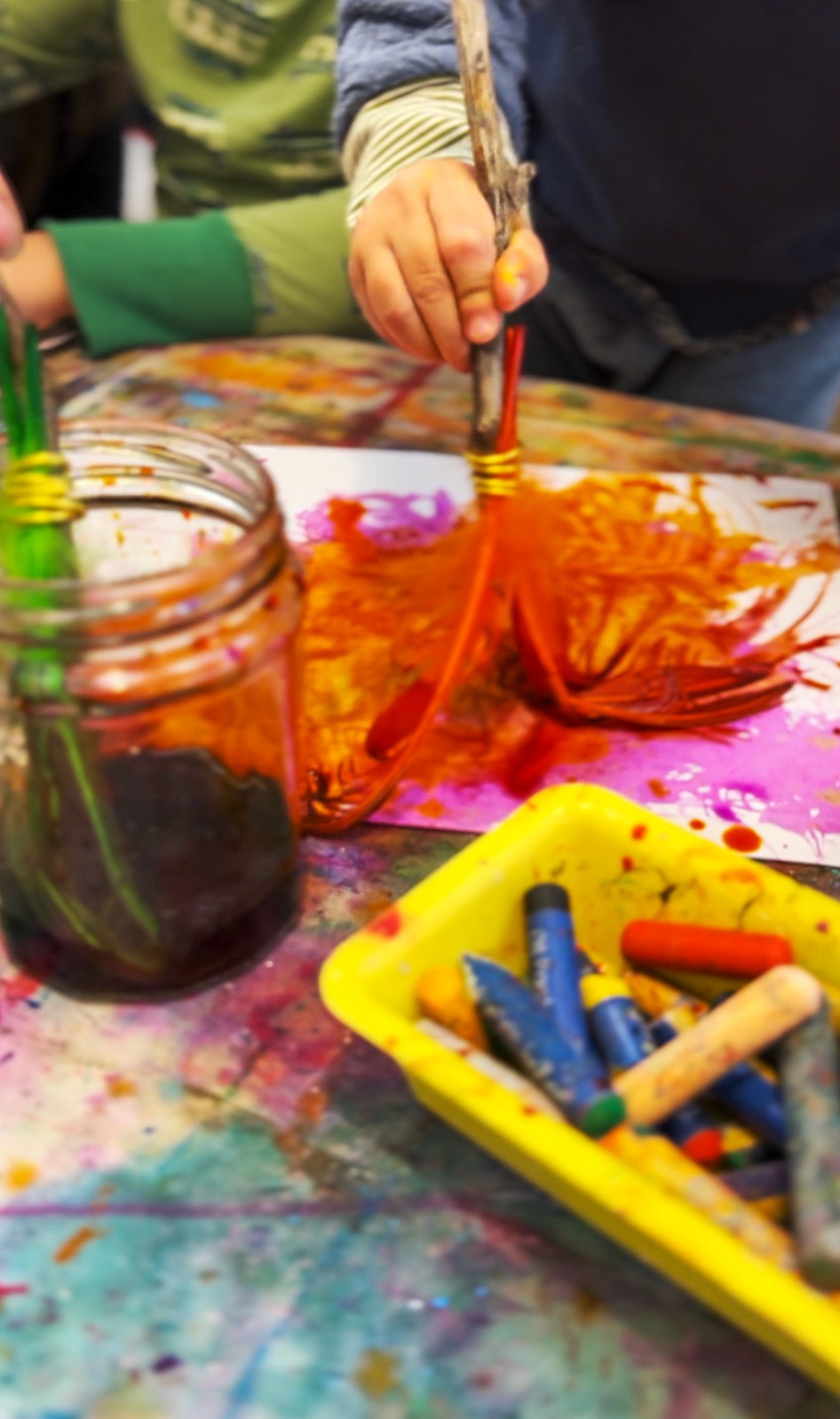 Paint sticks and oil pastels