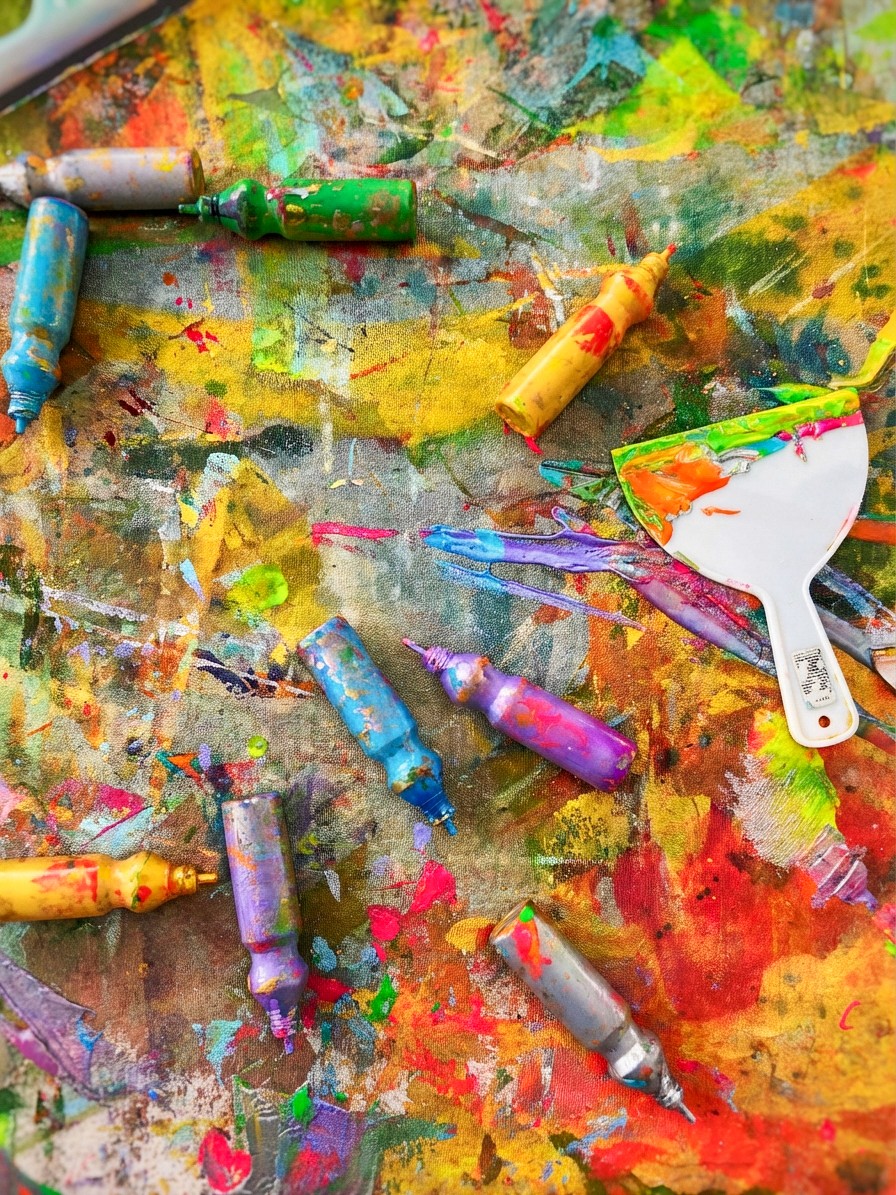 • Acrylic paints, a curated colour palette works best