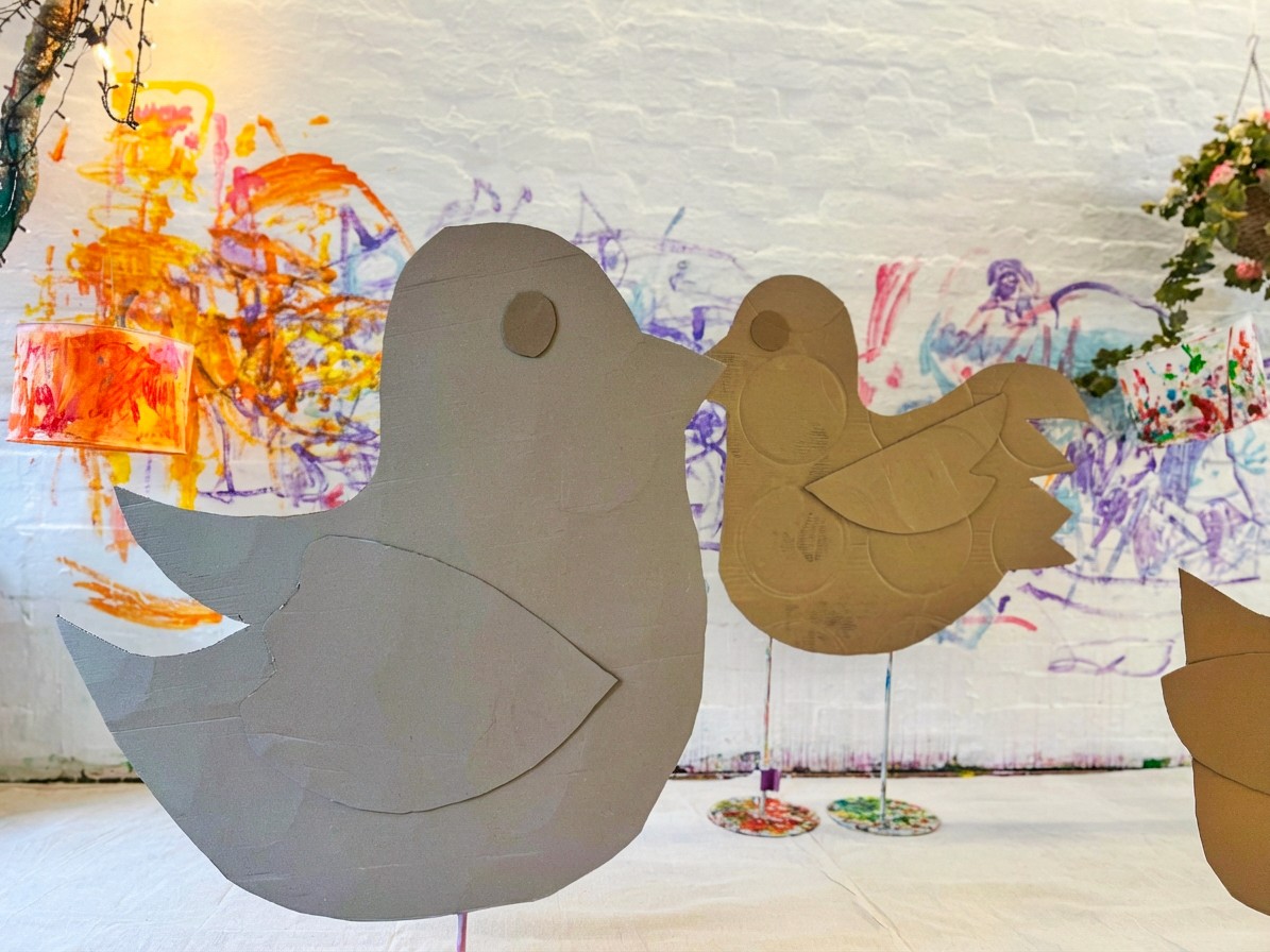 It's all about personality and was inspired by the wonderful Colourful Minds Kids, who themselves were inspired by Chris Haughton's illustrations in his book Shh! We Have a Plan. Every bird turns out completely different, and the placement of the wings is what really brings them to life. Angled up and they look like they're mid-flight, tucked down and they're resting, spread wide and they're showing off. It's amazing how much character a cardboard bird can have!