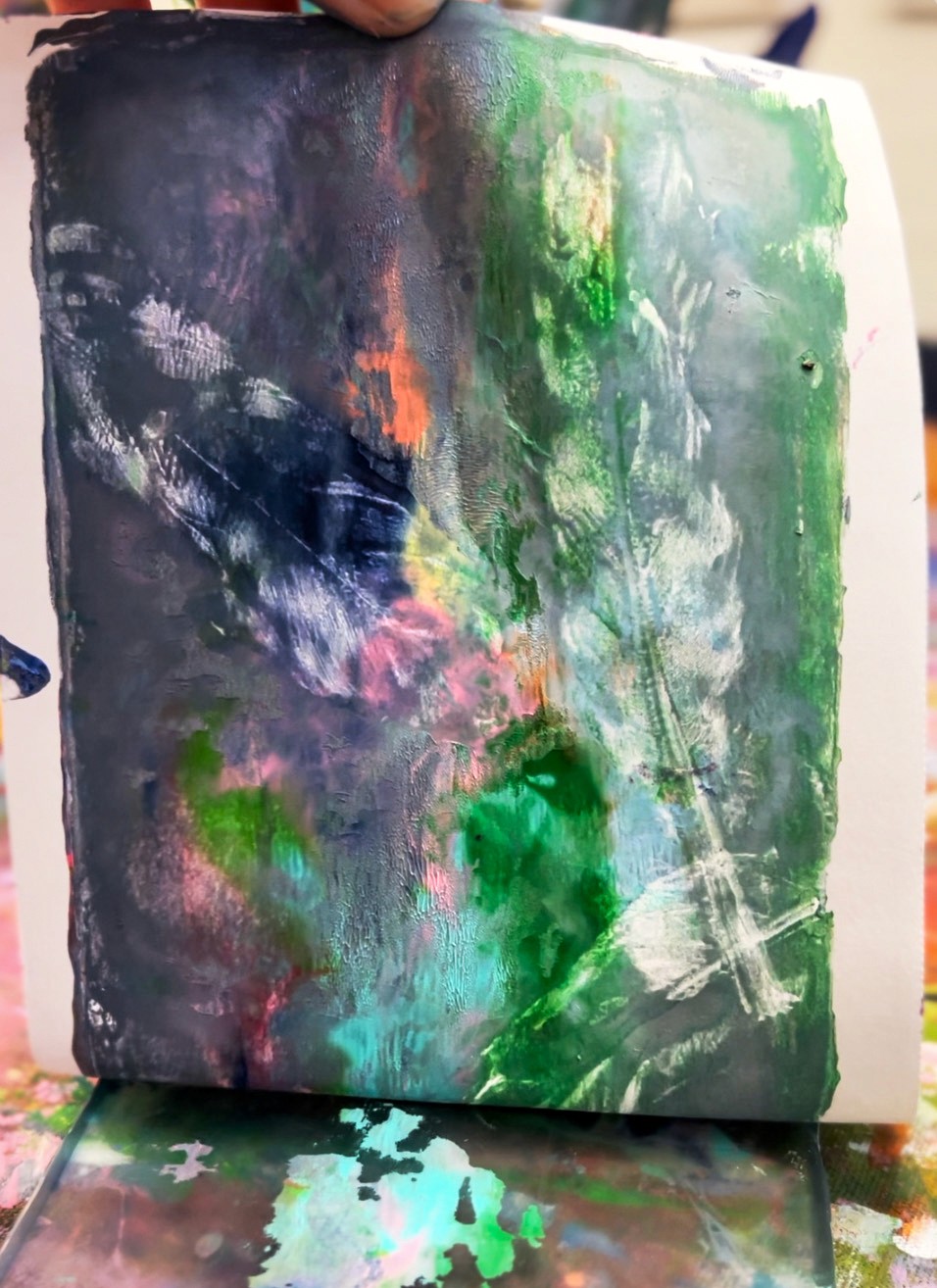 Work quickly so the paint doesn't dry on the plate. If it does start to dry, a quick spritz of water can help, or just wipe the plate clean with a baby wipe and start fresh. That's the beauty of gelli printing... each print takes just a minute or two, so you can experiment endlessly.
