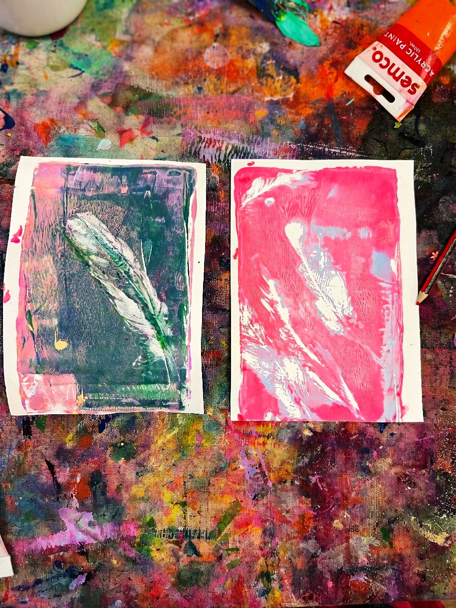 Gelli Printing with Feathers